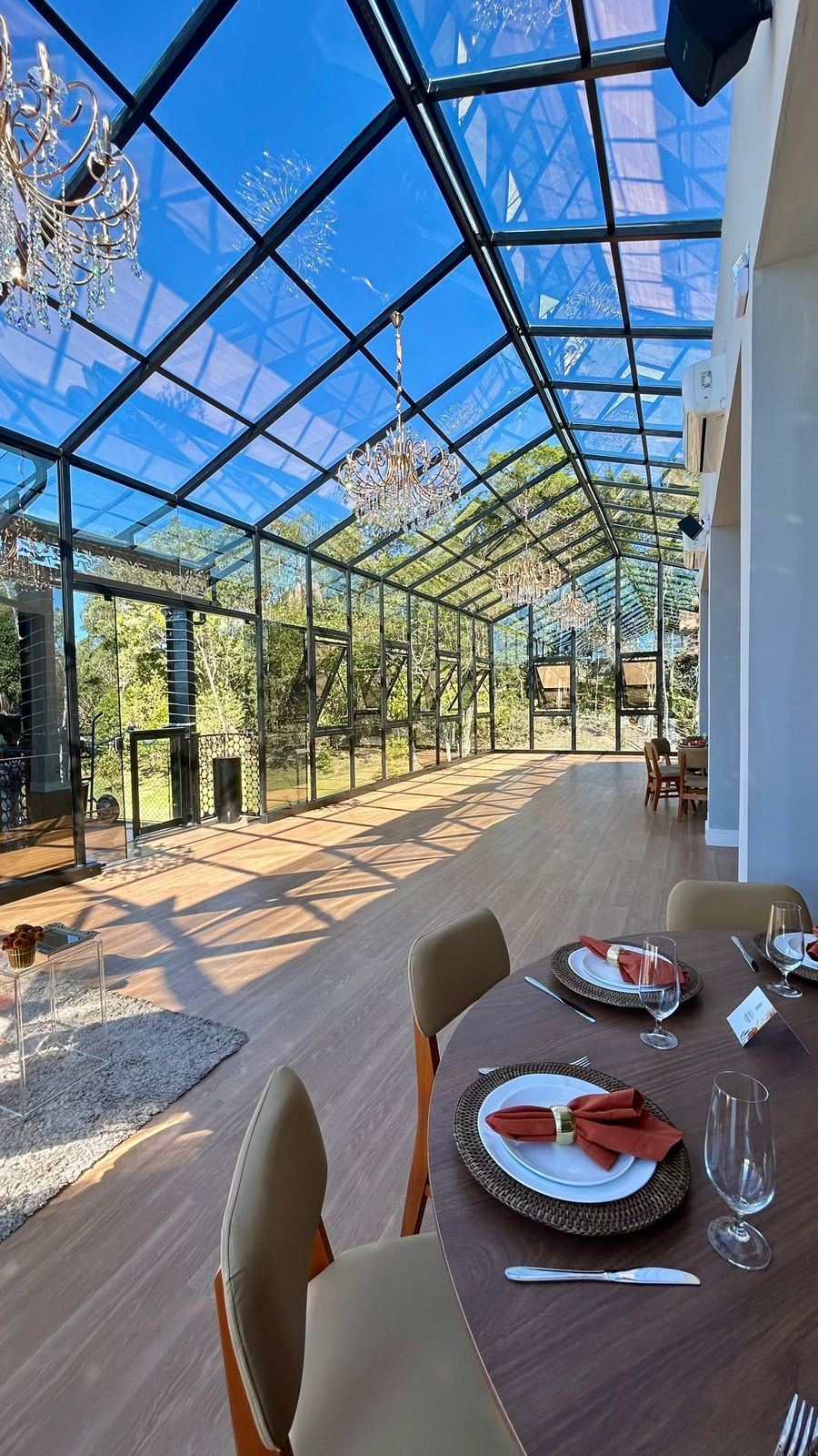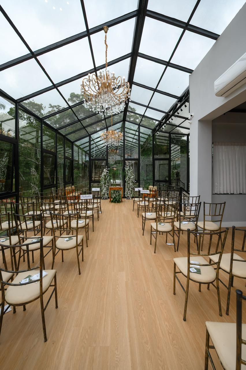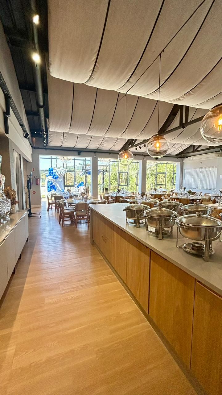 O salão tem capacidade para até 150 pessoas acomodadas e parte externa até 300 pessoas.